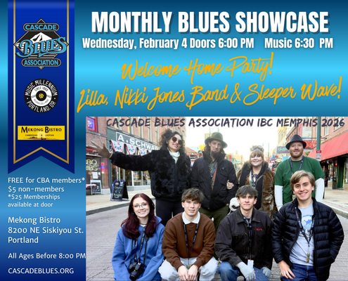 The Cascade Blues Association’s February Showcase – Welcome back from Memphis! Lilla, Nikki Jones Band & Sleeper Wave